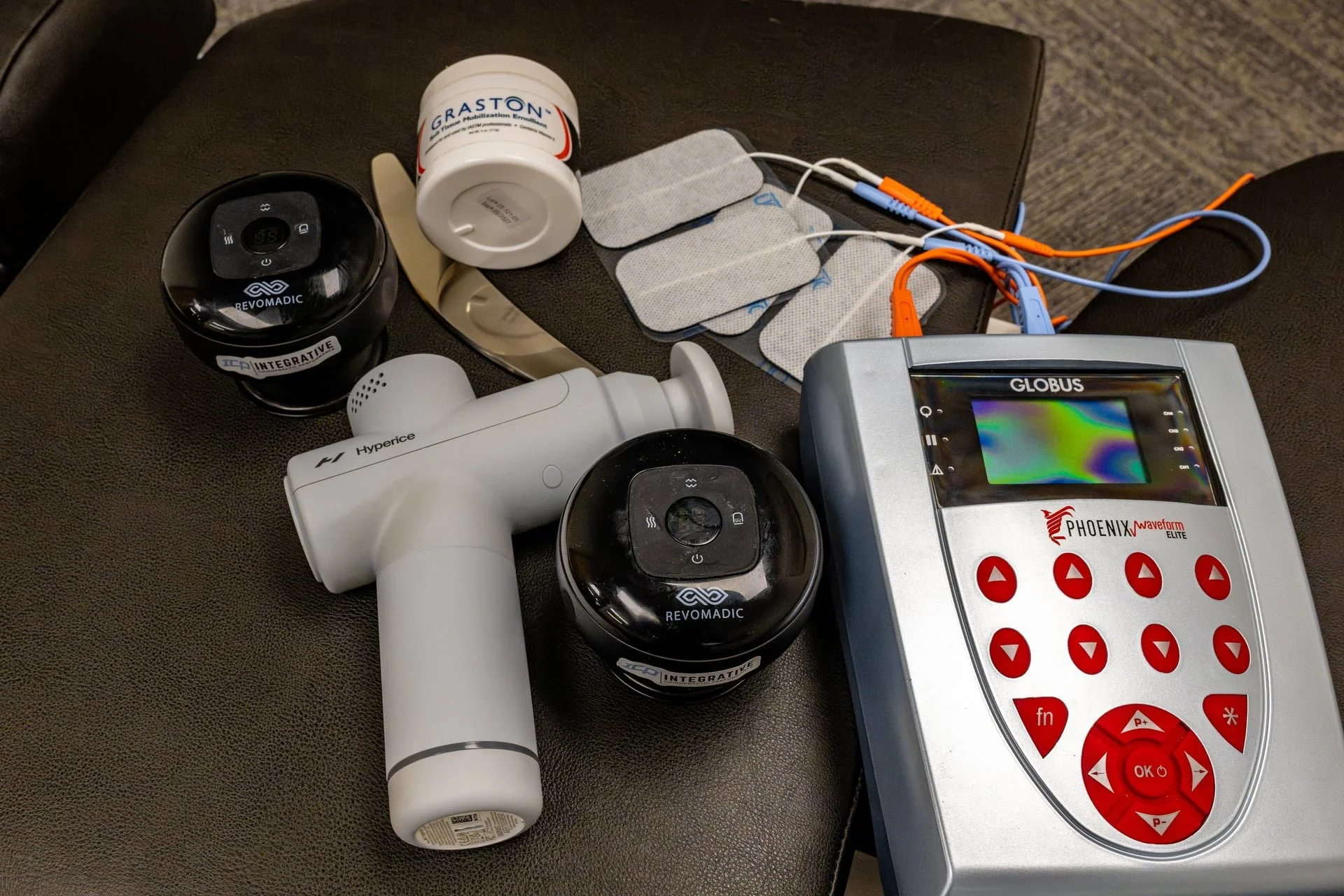 This therapy accelerates the body’s natural healing process by increasing blood flow to affected areas, reducing pain and retraining the nervous system to absorb force through muscles instead of joints, ligaments, or tendons. It stimulates soft tissue and creates new neuro-muscular patterns through gentle electrical pulses, helping the body heal faster and restore optimal function.